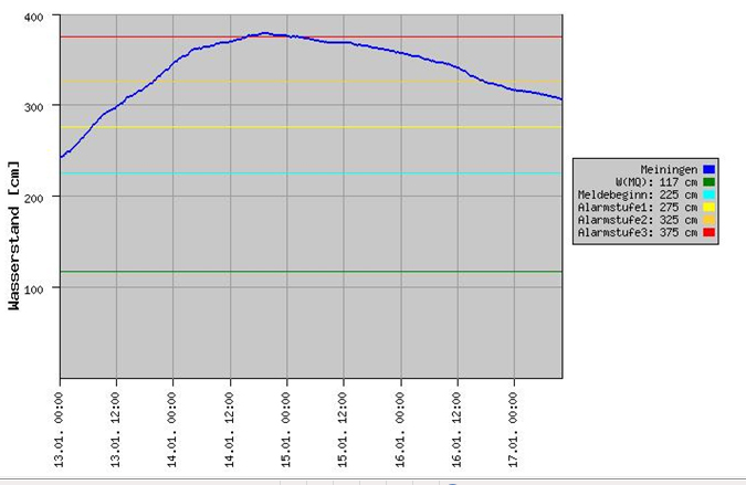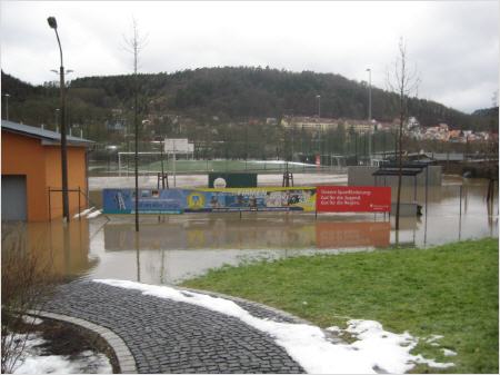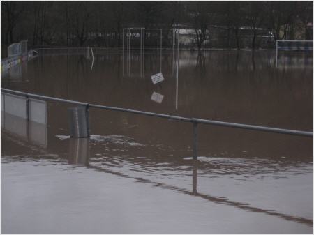der Höchsstand erreicht. Zu diesem Zeitpunkt waren alle Sportflächen im Stadion überflutet.